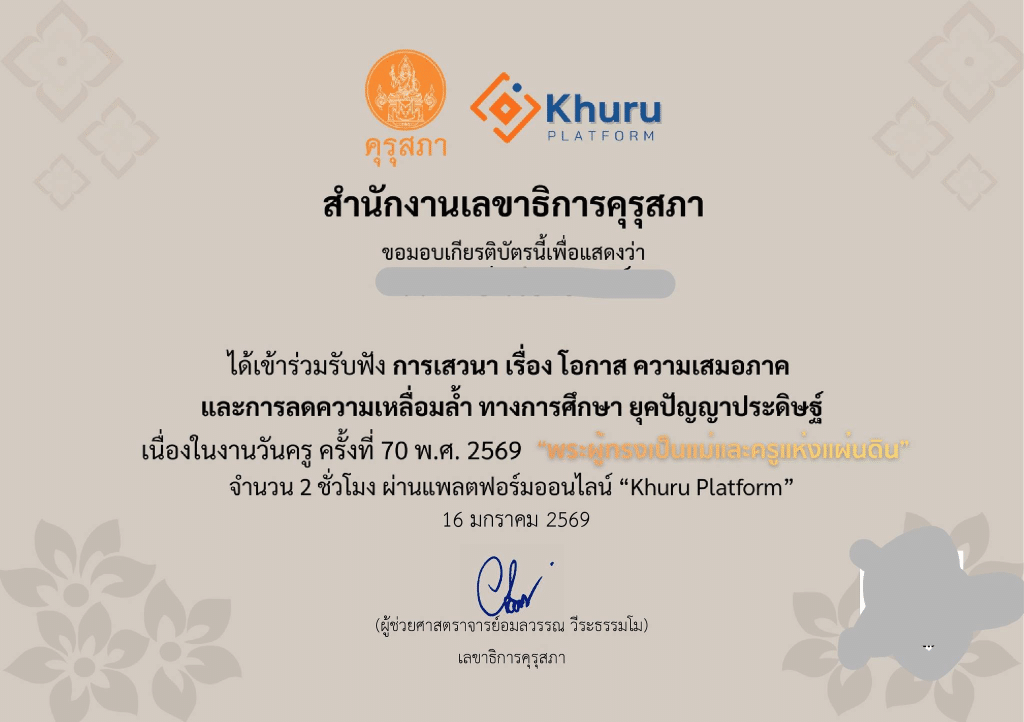 - เกียรติบัตรออนไลน์จากคุรุสภา เพื่อรับรองความรู้ความสามารถ